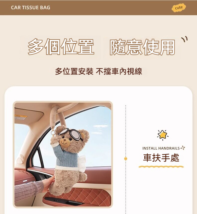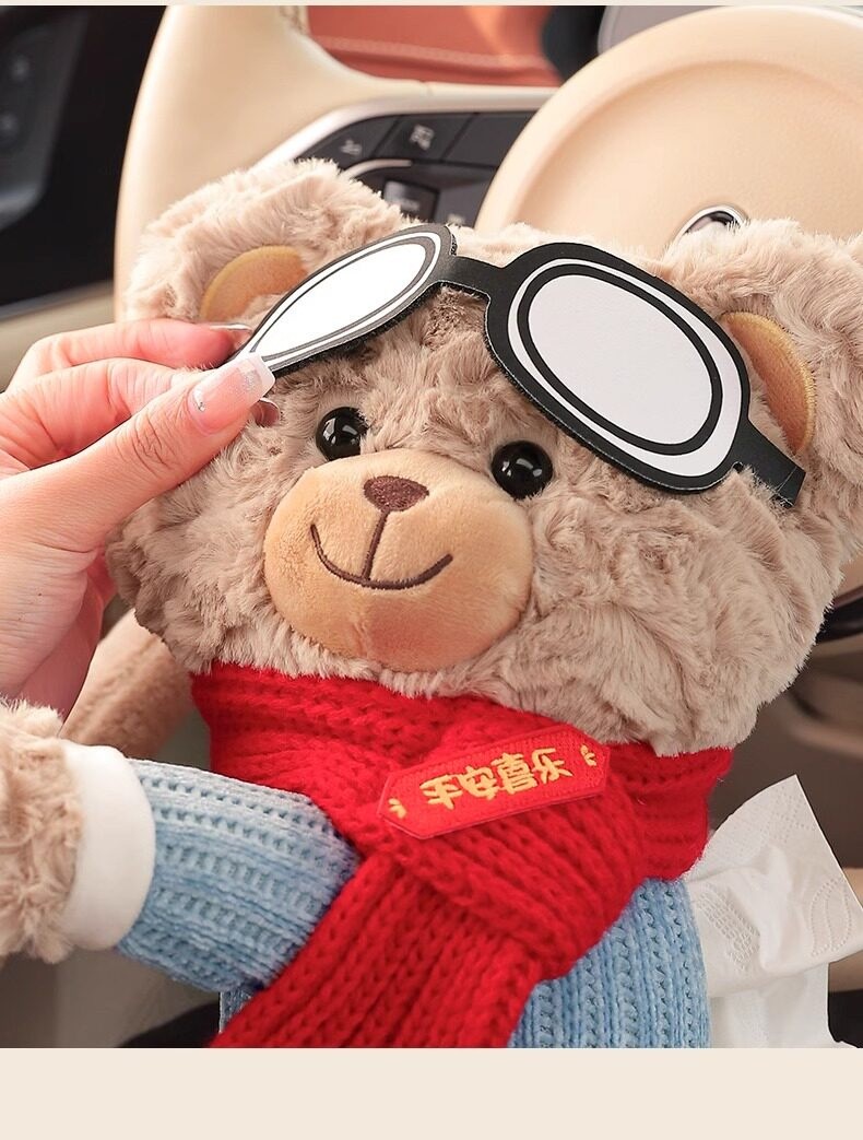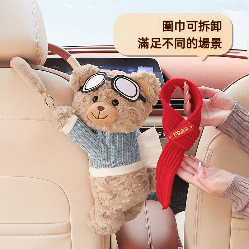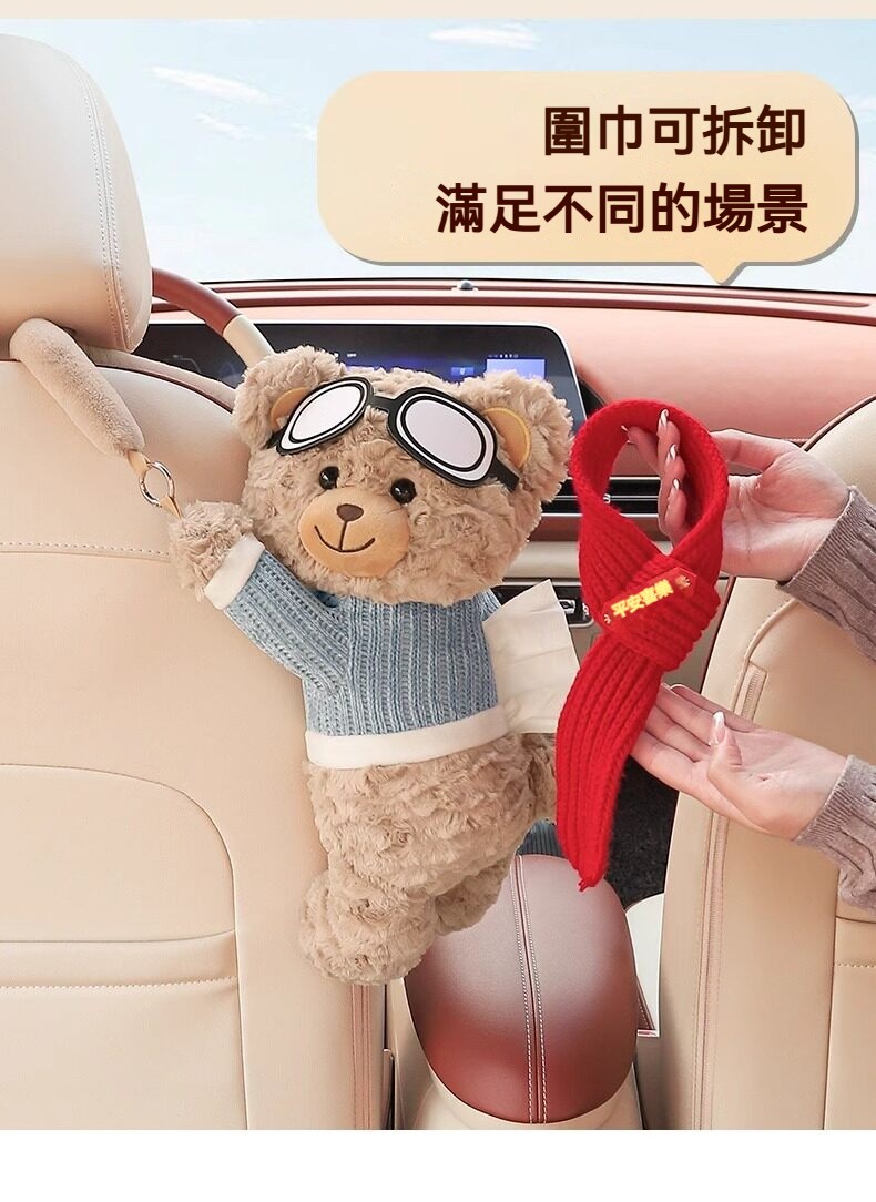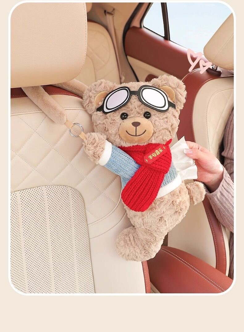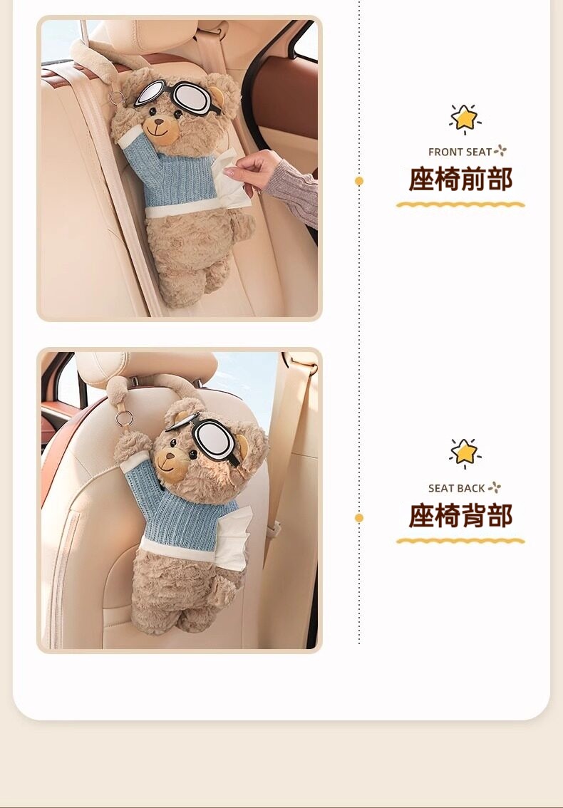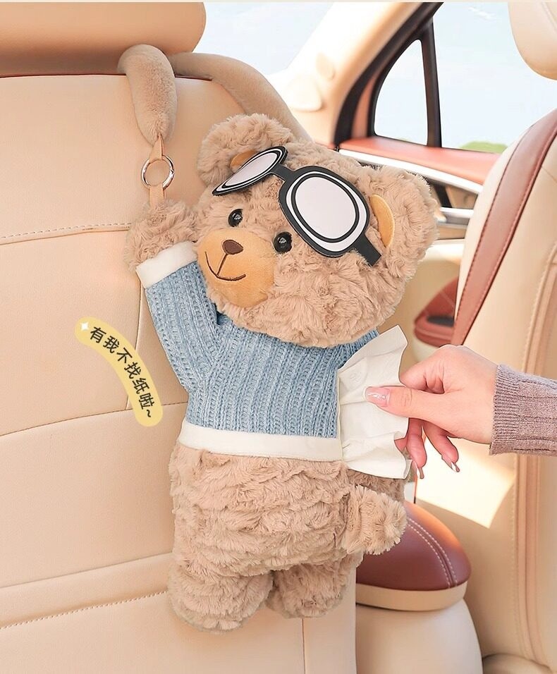 創意小熊車載紙巾盒|高質感毛絨 x 可愛療癒風,打造你的專屬行動空間 ✨