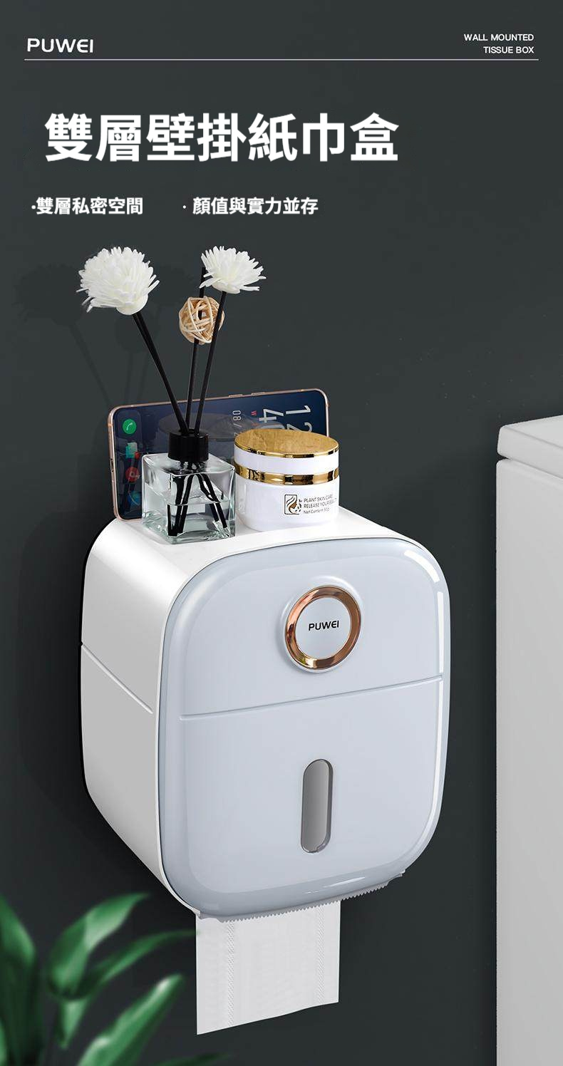 ✨台灣熱銷✨北歐輕奢衛生間紙巾盒|防水防潮免打孔壁掛✨高顏值卷紙收納架❤️ 簡約美型設計|升級材質防水抗污|一貼即穩強力黏膠|台灣家居必備 ❤️